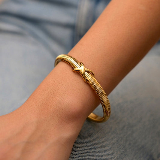 Pulsera Rígida Entrelazada - Chapa de Oro