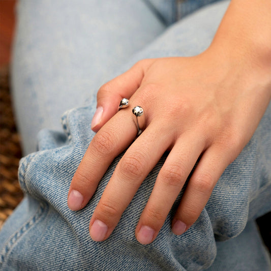 Anillo Abierto con Dos Esferas - Chapa de Rodio