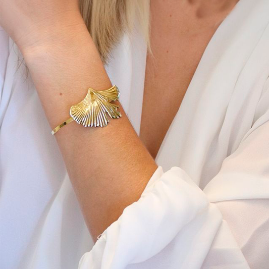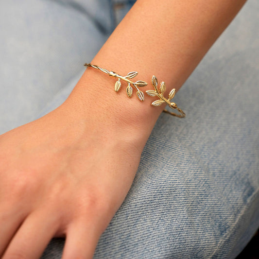 Brazalete Ajustable con Hojitas - Chapa de Oro