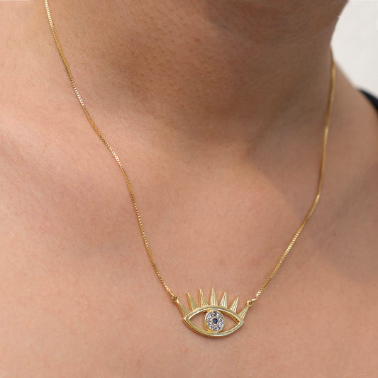 Collar largo con Ojo y Zirconias - Chapa de Oro