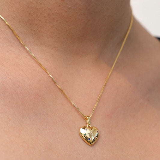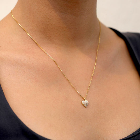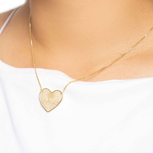 Collar Largo Corazón con Zirconias - Chapa de Oro