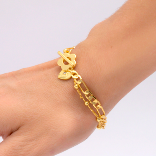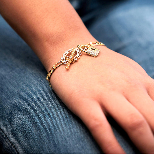 Pulsera Eslabones Doble con Dijes - Chapa de Oro