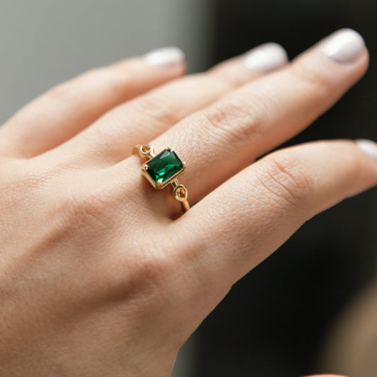 Anillo Zirconia Esmeralda – Chapa de Oro