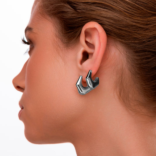 Arracada Pentagonal Chunky - Chapa de Rodio