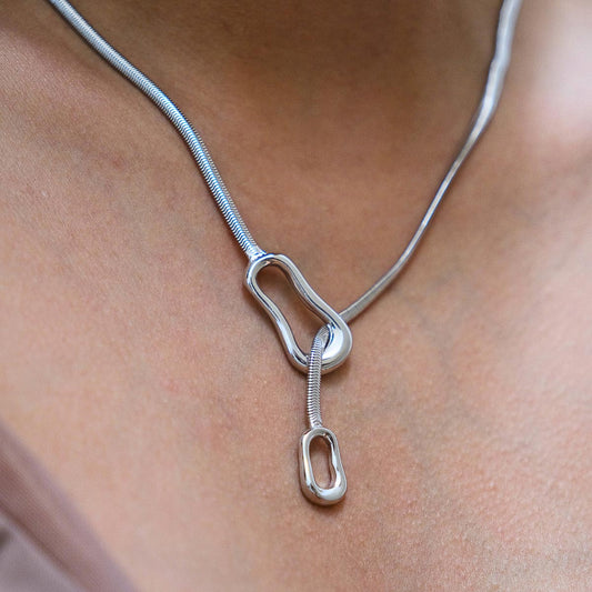 Collar C Chunky Volteada Gde - Chapa de Rodio