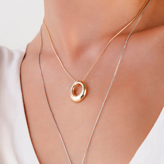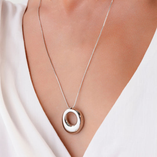 Collar con Dije Ovalo Chunky - Chapa de Rodio