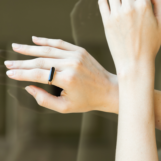 Anillo Ajustable negro Texturizado - Chapa de oro
