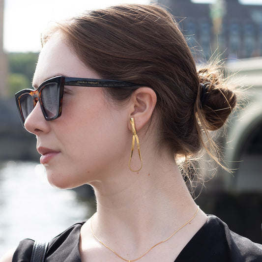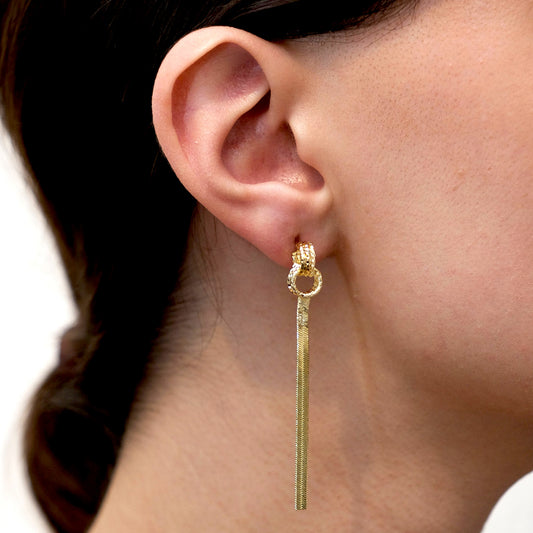 Arete Largo Círculos Entrelazados - Chapa de Oro